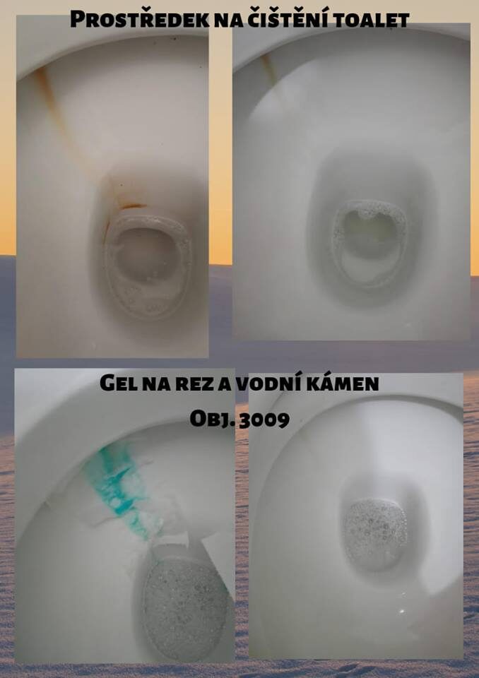 3, znečištění rez a vodní kámen - gel na rez a vodní kámen, agent, čistič WC