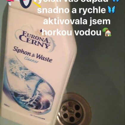odstraňuje vodní kámen a usazeniny z odpadu WC a